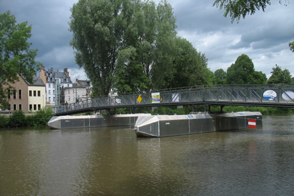 Diese Schwimmbrücke in Genf sieht aus wie ein Boot.