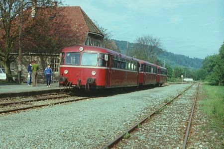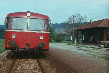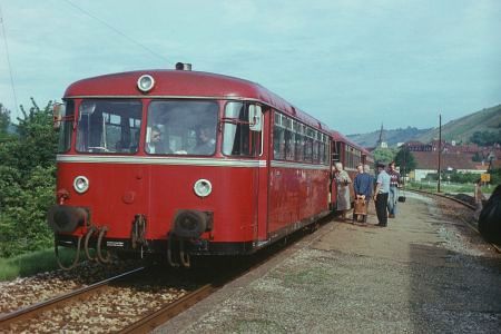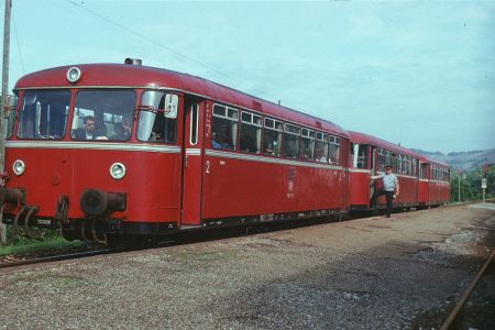 Die Strecke war also vor nicht allzulanger Zeit nochmals instandgesetzt geworden. Die Schienenbusse waren ja auch durch lokbespannte Züge ersetzt worden, nachdem im Schülerverkehr die vier Garnituren Schienenbus komplett sardinenmäßig gefüllt gewesen waren.