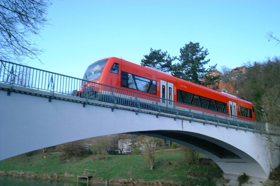 ![]() Ammertalbahn auf der Neckarbrücke in Tübingen |